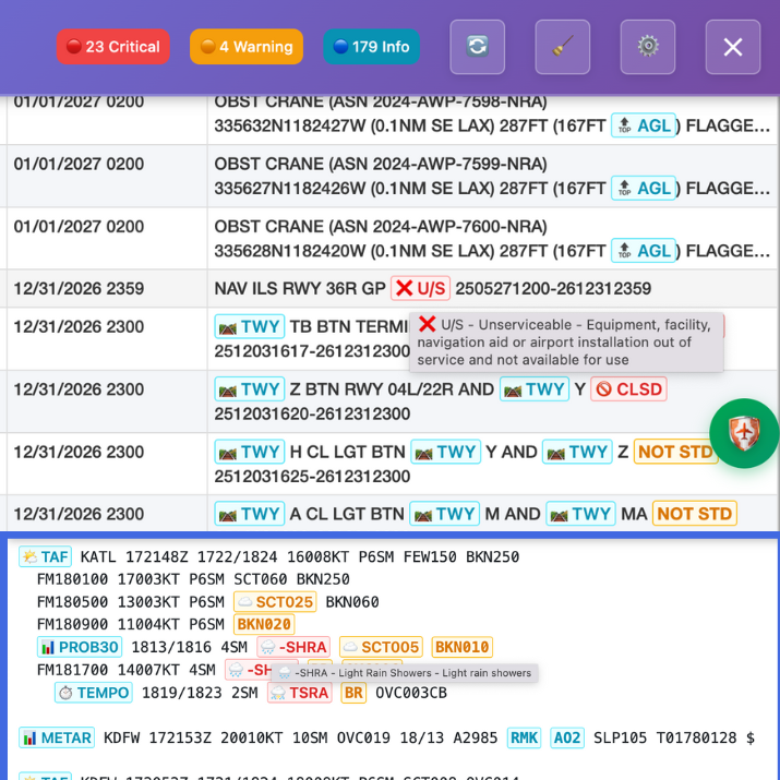 Automatically detect critical risks in NOTAMs, METAR, TAF, and SIGMET reports before you make a decision. The essential browser extension for pilots and dispatchers who demand accuracy and operational compliance.